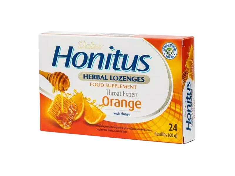 Cukor, kukoricaszirup, méz, mentol, narancs aroma, indiai egres (Phyllanthus emblica) gyümölcskivonat, édesgyökér (Glycyrrhiza glabra) gyökérkivonat, gyömbér (Zingiber officinalis) rizómakivonat, kurkuma (Curcuma longa) rizómakivonat, színezék (Sunset yellow), tisztított víz.