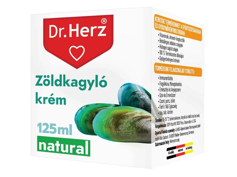 A Zöldkagyló krém értékes hatóanyagai révén ápolja és lazává teszi a bőrt, elősegíti a mozgékonyságot, izomfeszülést / merevség estén, pl.: a nyak és a hát testtájakon.