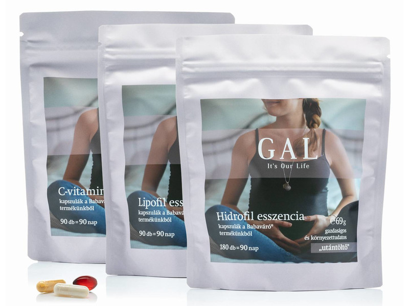 Ez a termék a GAL Babaváró 90 adagos változata, a három „utántöltő” együtt.