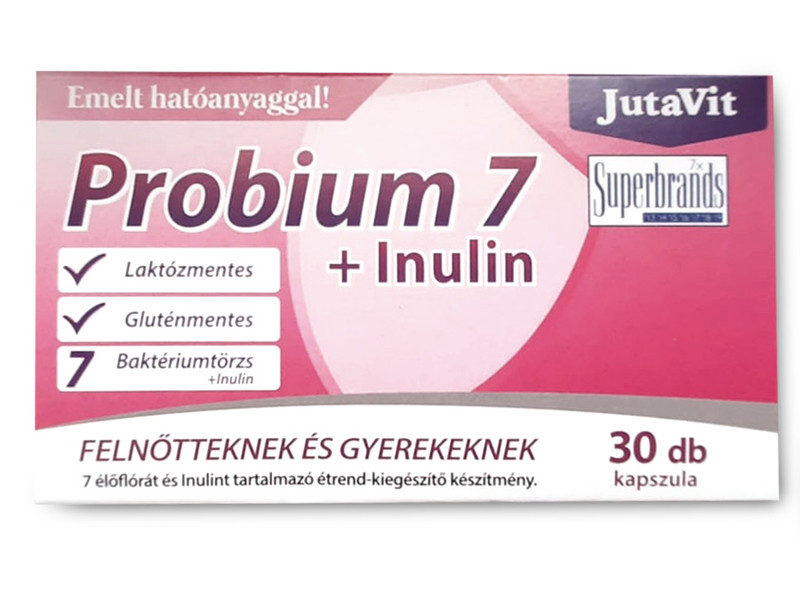 A JutaVit Probium 7 + Inulin termék feladata a károsodott bélflóra támogatása – jótékony hatását fejti ki a szervezetben az antibiotikumos kezelés, gyomor- vagy bélrendszeri fertőzés révén felborult belső egyensúlyra. A termék 7 féle élőflórát tartalmaz, a benne található hozzáadott inulin pedig jó kiváló tápanyag a jó baktériumoknak.