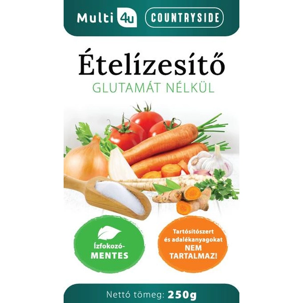 Ízfokozómentes ételízesítő. Tartósítószert és adalékanyagokat nem tartalmaz!